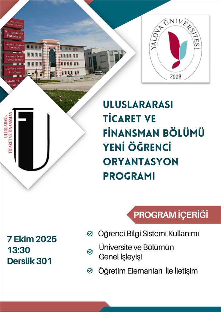 Bölümümüze yeni gelen öğrencilerimize yönelik oryantasyon programı 7 Ekim tarihinde saat 13.30'da 301 numaralı derslikte yapılacaktır.